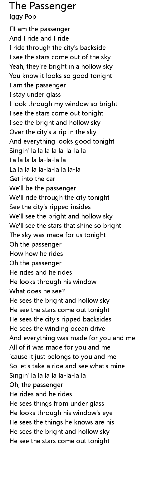 | [02:20.299] | Oh the passenger |