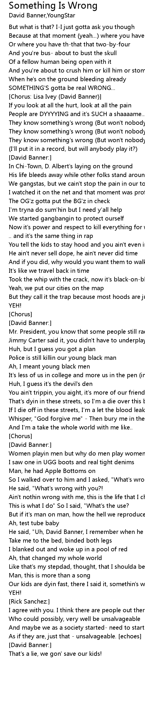 They know something's wrong (But won't nobody say it) |