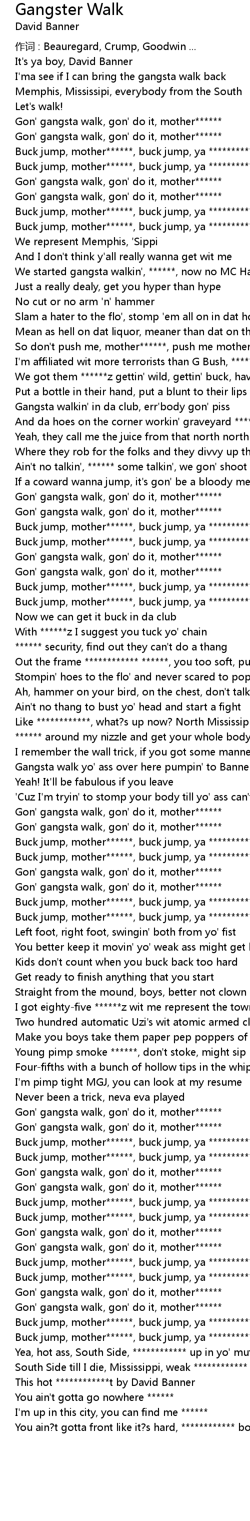 | Gon' gangsta walk, gon' do it, mother****** | |