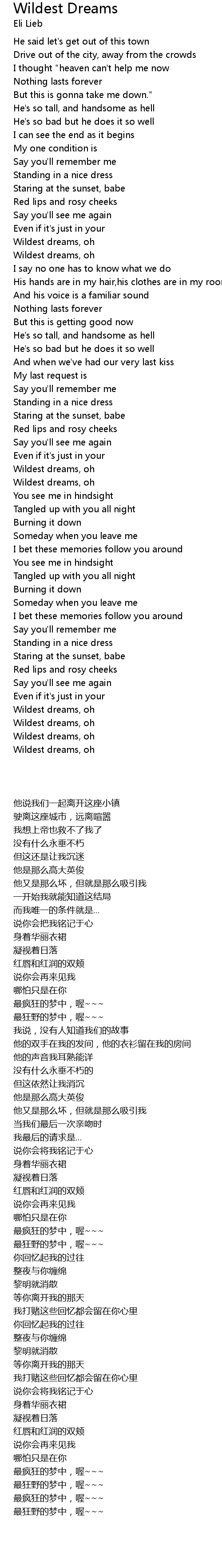 | [03:05.000] | Wildest dreams, oh |