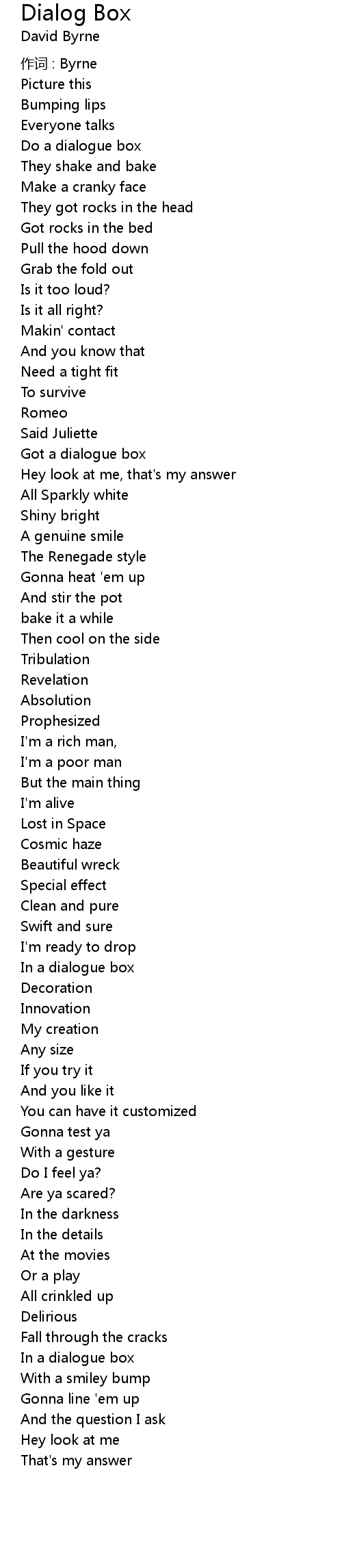 | 作词 : Byrne | |