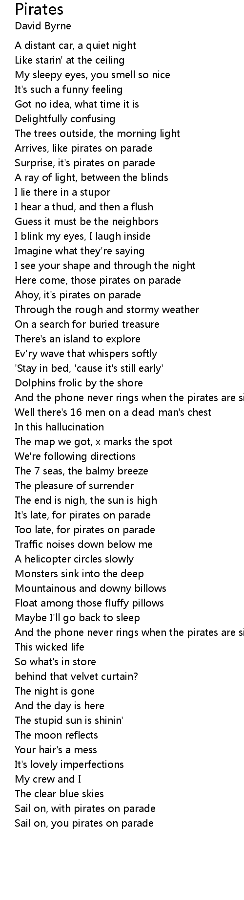 And the phone never rings when the pirates are singing |