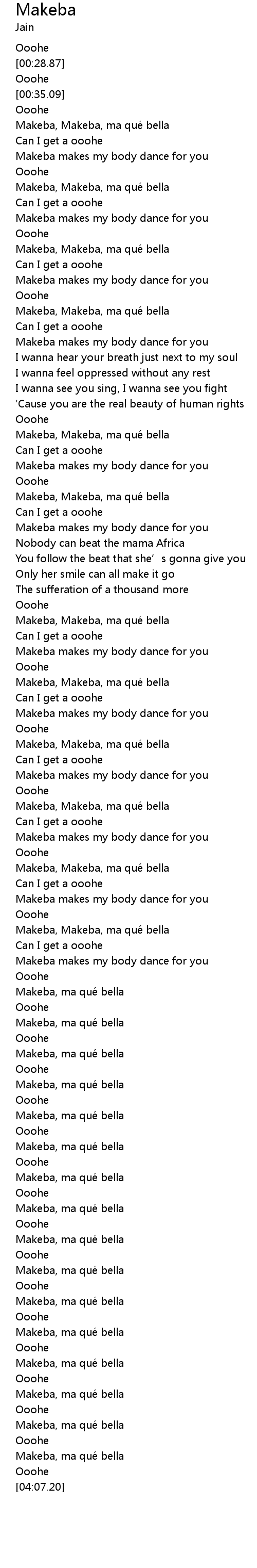 | [02:04.98] | Makeba, Makeba, ma que bella |