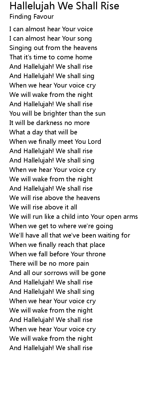 And Hallelujah! We shall rise |