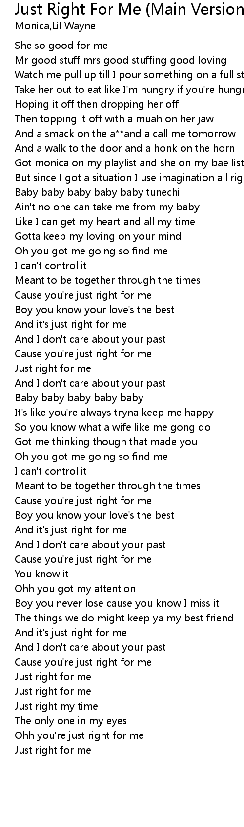 | [02:04.382] | Cause you're just right for me |