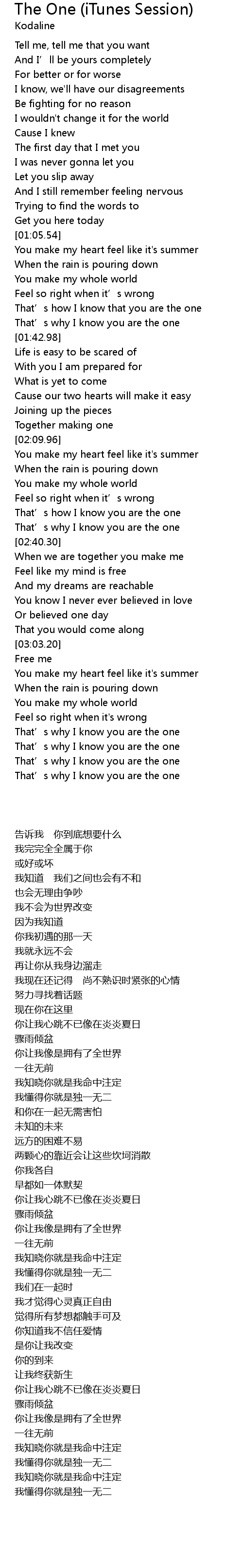 | [01:33.52] | That' s why I know you are the one |