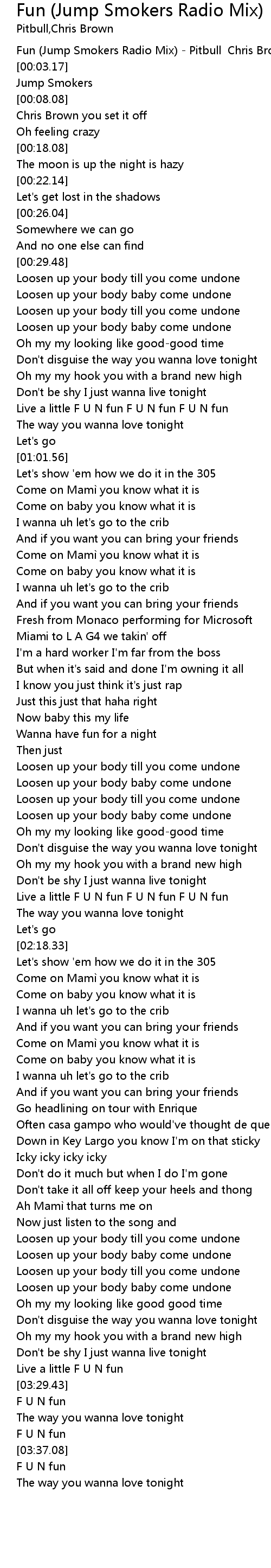 | [00:01.47] | Fun Jump Smokers Radio Mix Pitbull Chris Brown |