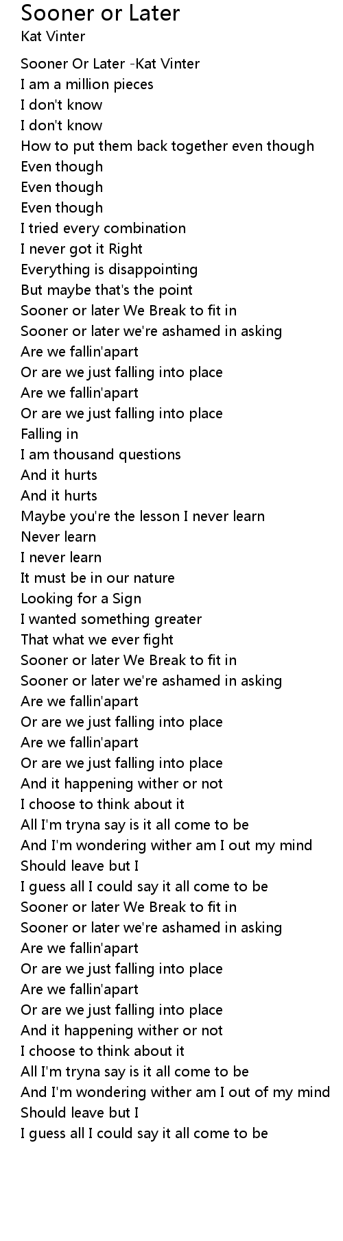 Sooner Or Later -Kat Vinter |