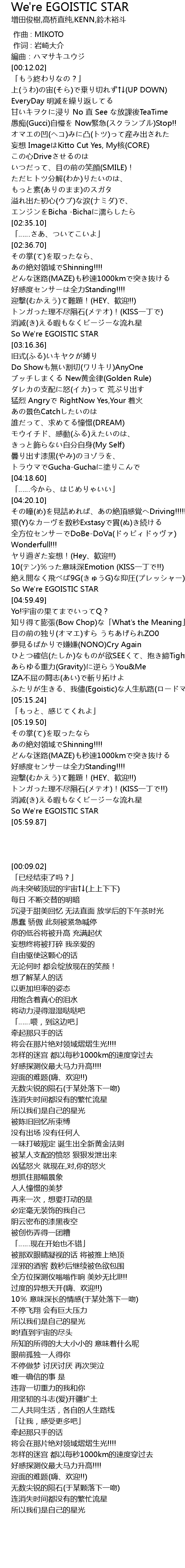 | [04:53.60] | So We're EGOISTIC STAR |