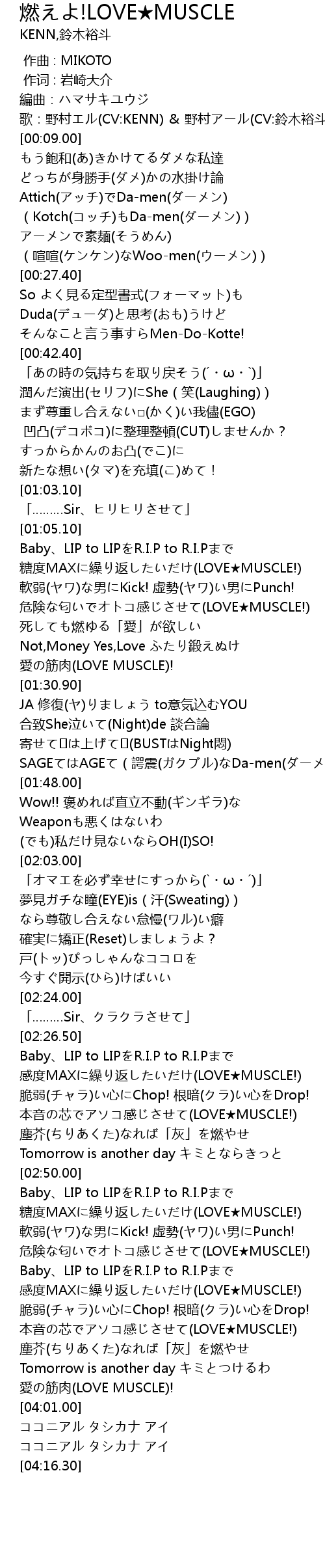 | [03:59.90] | 愛の筋肉(LOVE MUSCLE)! |