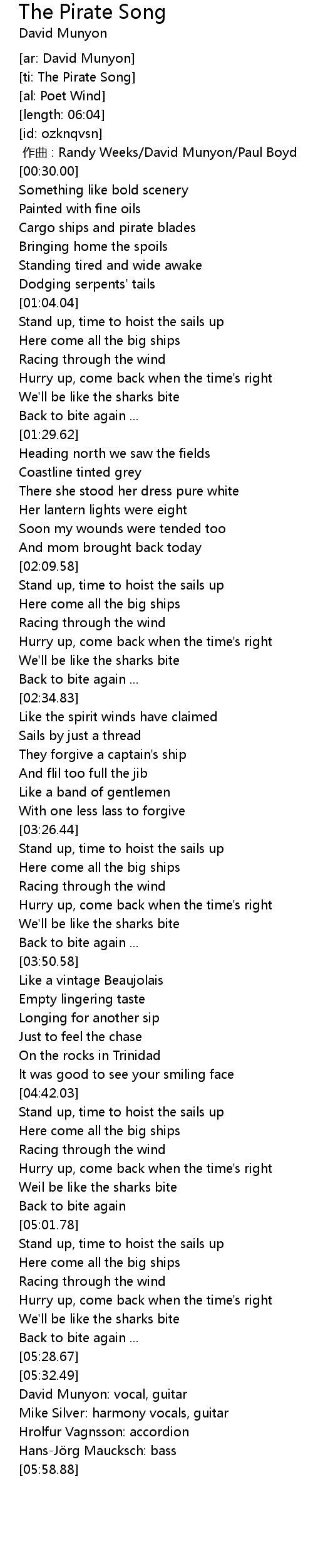 | [00:00.00] | zuo qu : Randy Weeks David Munyon Paul Boyd |
