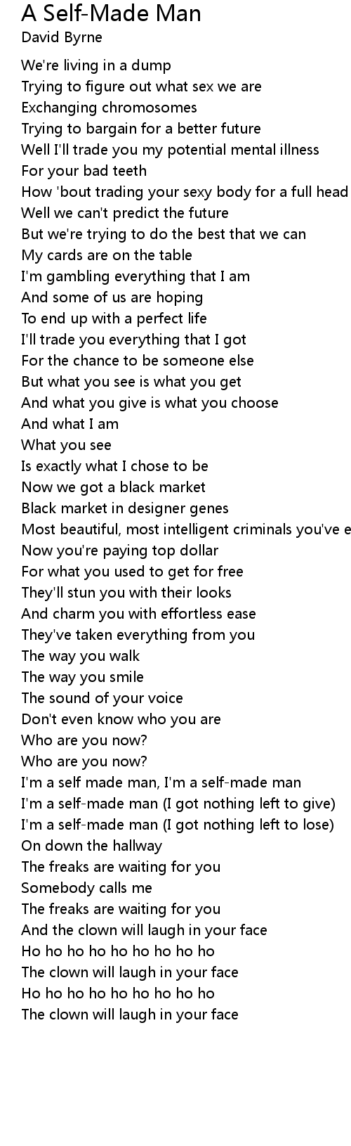 I'm a self made man, I'm a self-made man |