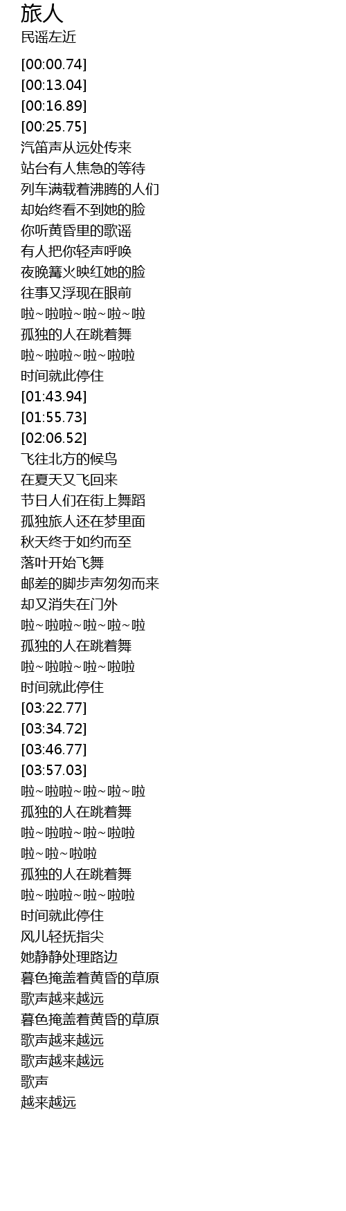 | [02:28.24] | 孤独旅人还在梦里面 |