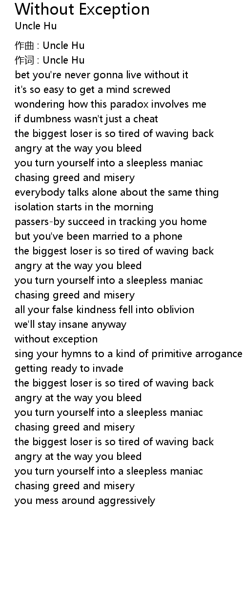 | 作词 : Uncle Hu | |