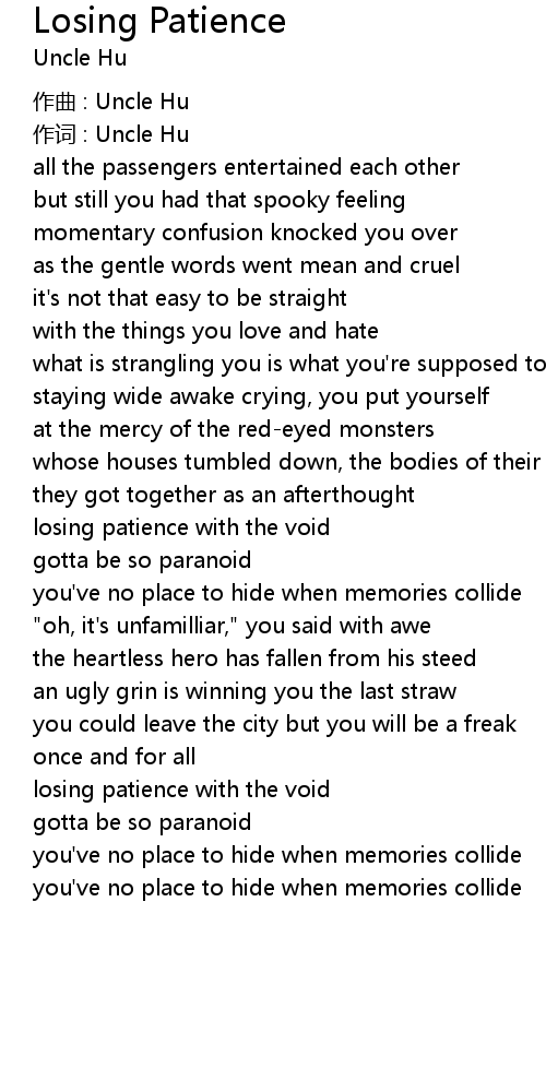 | Song | Losing Patience |