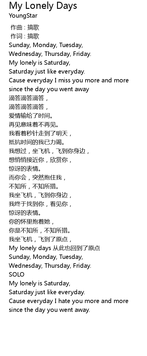 | [02:24.31] | My lonely is Saturday, |