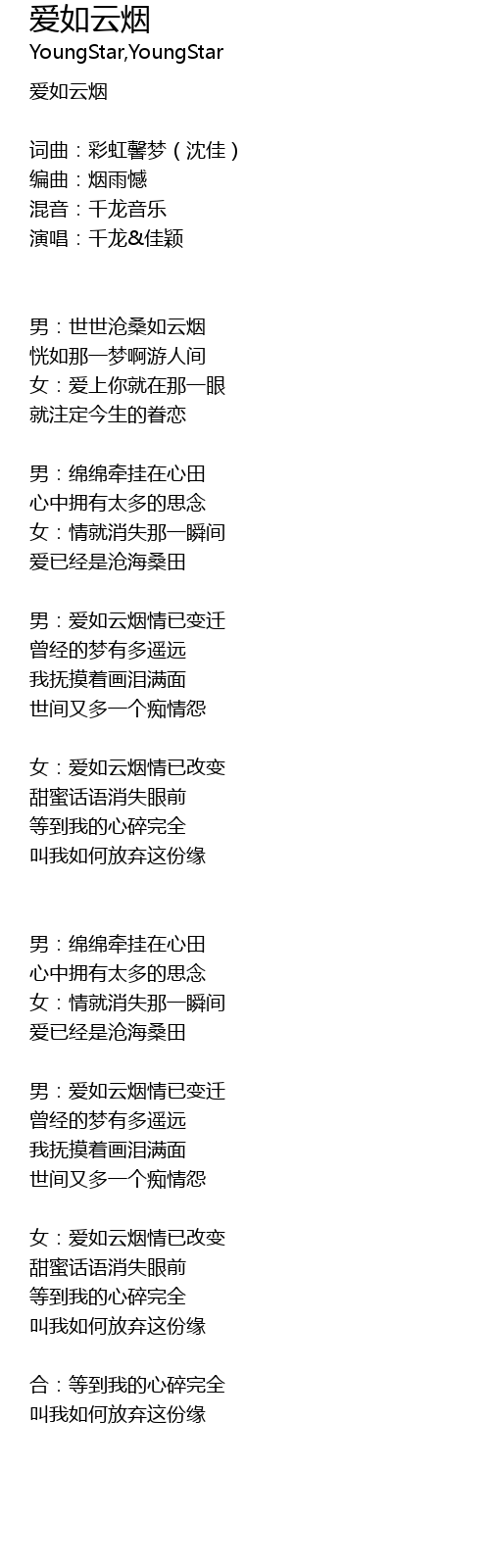 | 男:爱如云烟情已变迁 | |