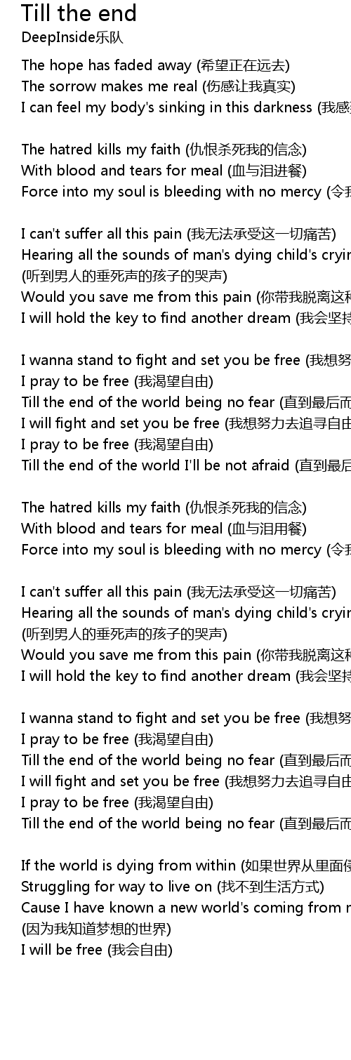 | Till the end of the world I'll be not afraid (直到最后而不会害怕) | |