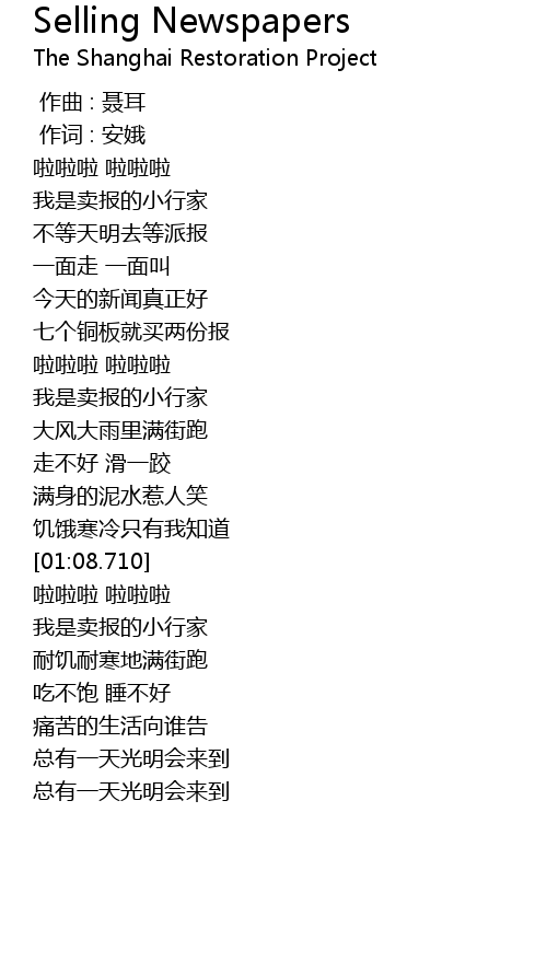 | [00:47.320] | wǒ shì mài bào de xiǎo háng jiā |