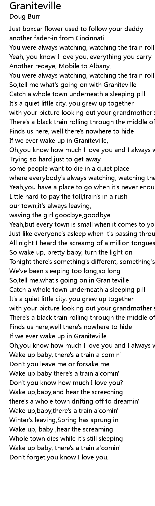 If we ever wake up in Graniteville, |