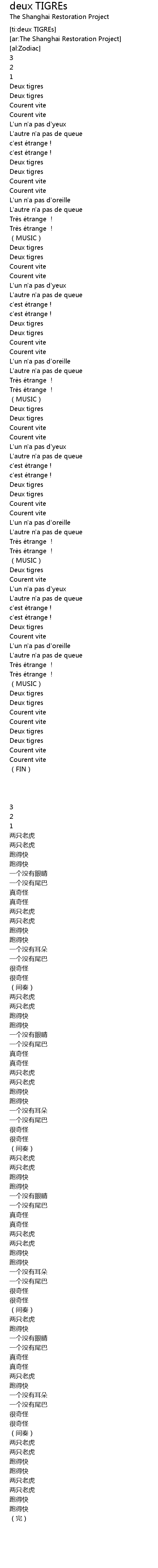 | [00:53.47] | Deux tigres |
