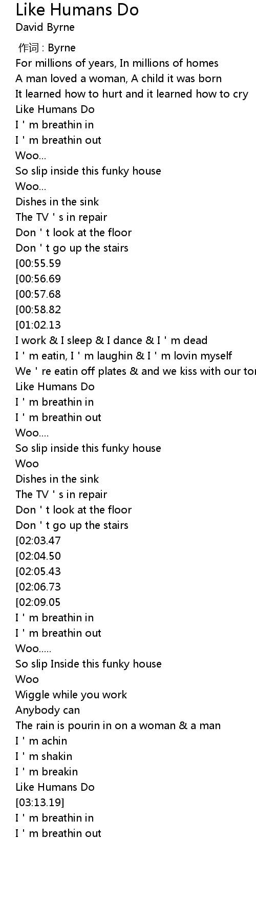| [01:18.37] | I work & I sleep & I dance & I'm dead |