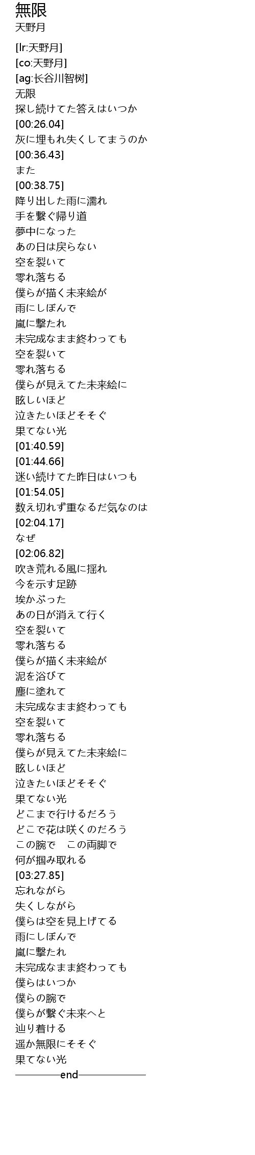 | [00:45.30] | 手を繋ぐ帰り道 |