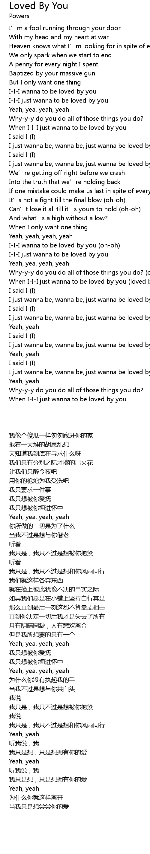 | [03:25.37] | I just wanna be, wanna be, just wanna be loved by you |