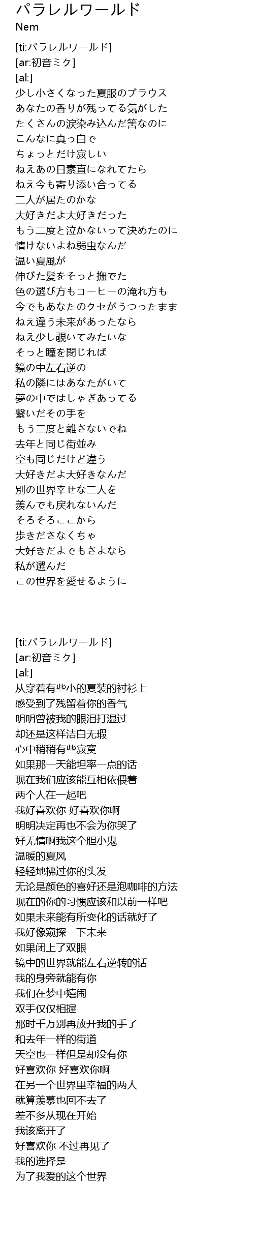 [ti:パラレルワールド] |