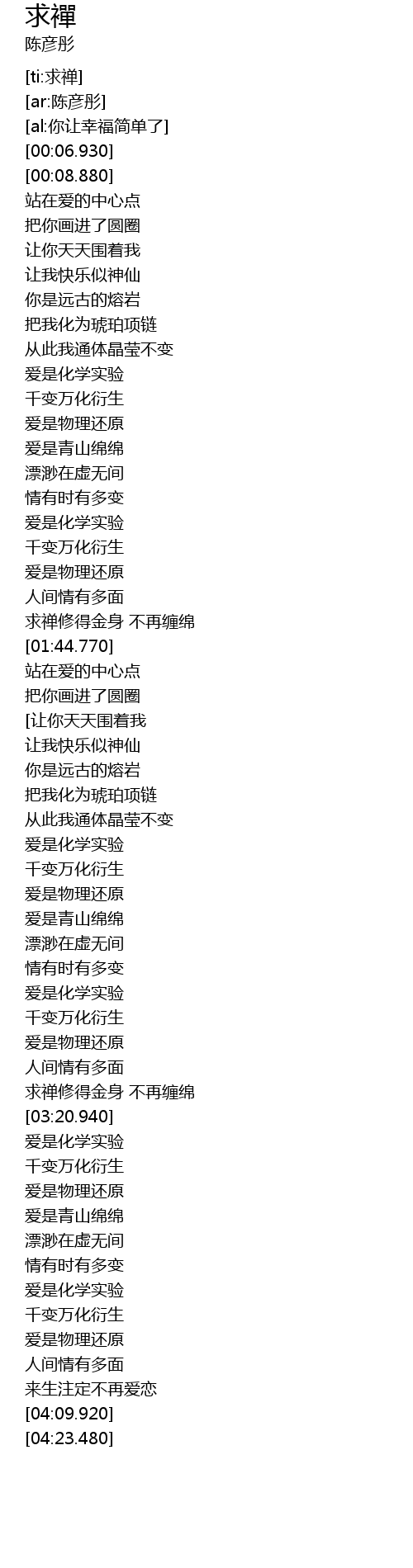 | [03:11.700] | 求禅修得金身 不再缠绵 |