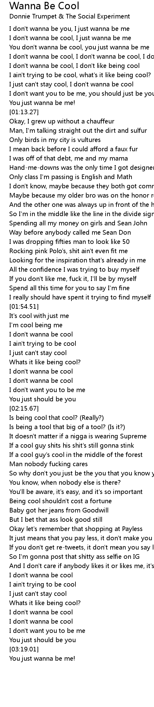 I don't wanna be cool, I don't wanna be cool, I don't wanna be cool |