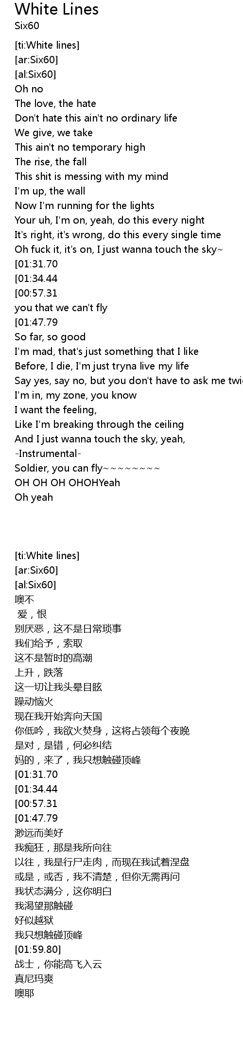 | [00:54.66][01:47.79] | White line, all the time |