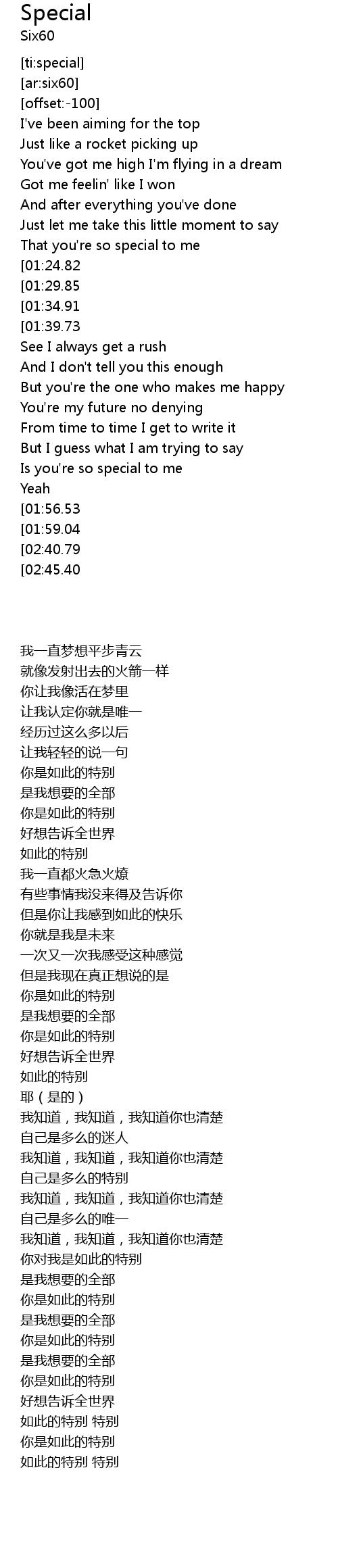 | [01:54.26][01:59.04][02:04.16] | That you're so special |