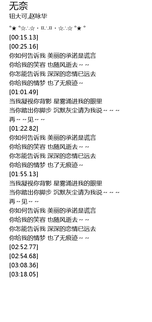 | [00:39.13] | 你给我的笑容 也随风逝去~~ |