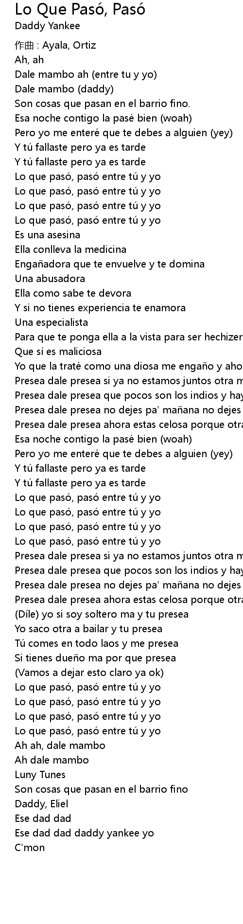 | Song | Lo Que Pasó, Pasó |