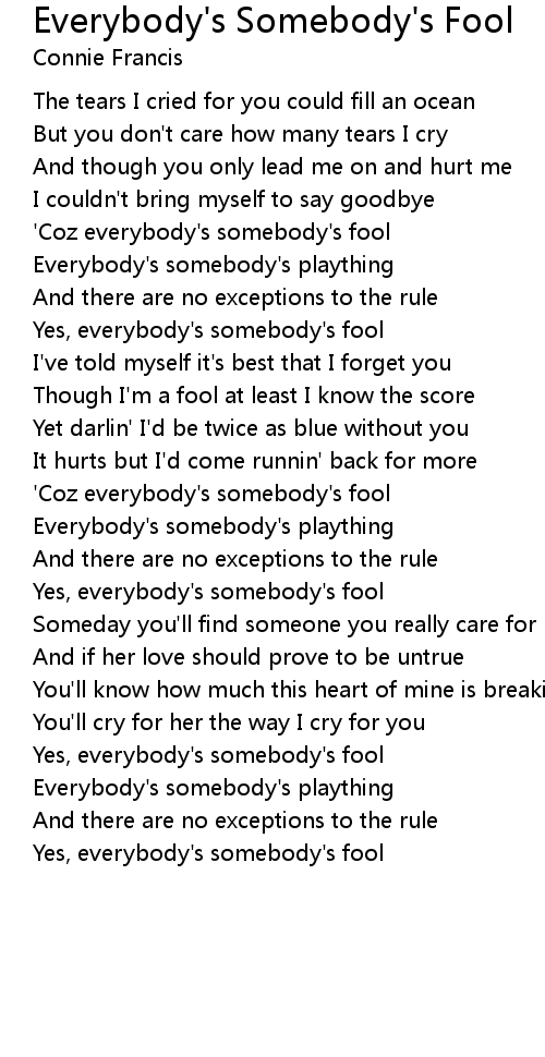 'Coz everybody's somebody's fool |