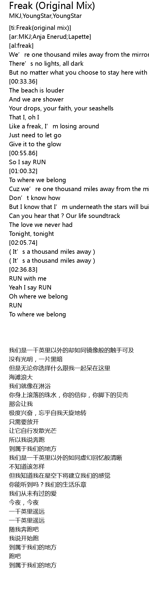 | [00:46.70] | Like a freak, I' m losing around |