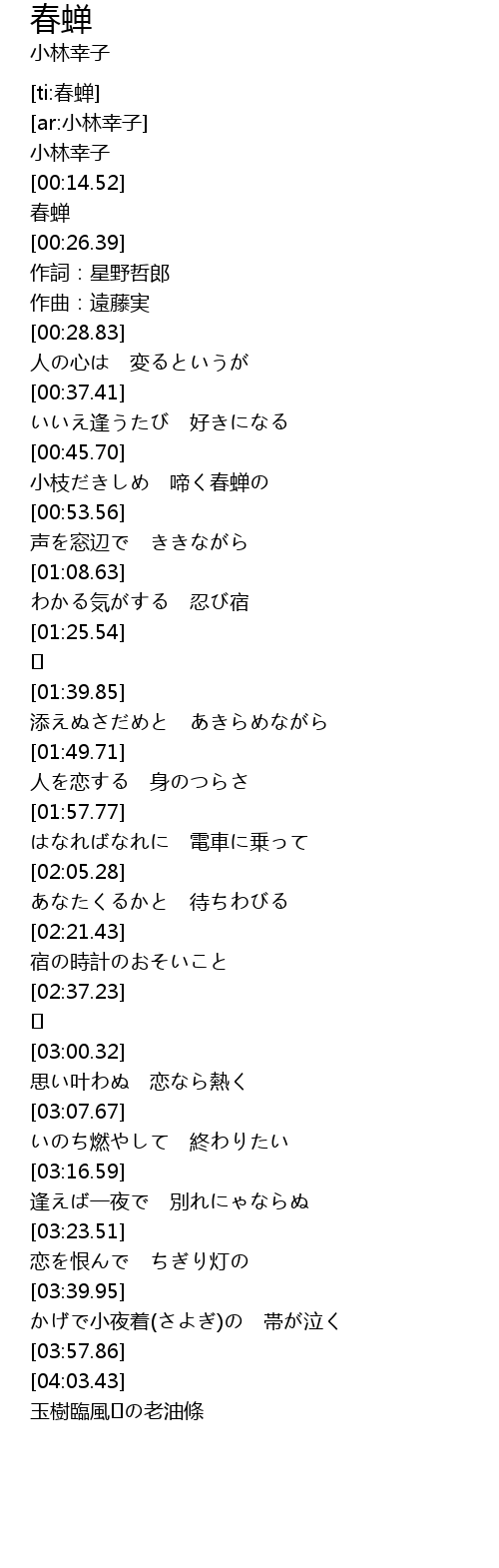 | [00:47.30] | 小枝だきしめ 啼く春蝉の |