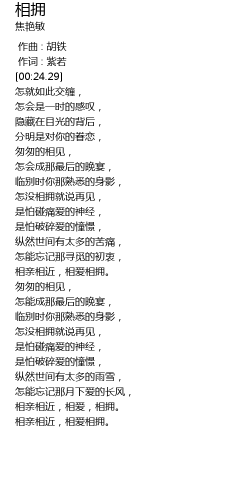 | [03:29.81] | 相亲相近,相爱,相拥。 |