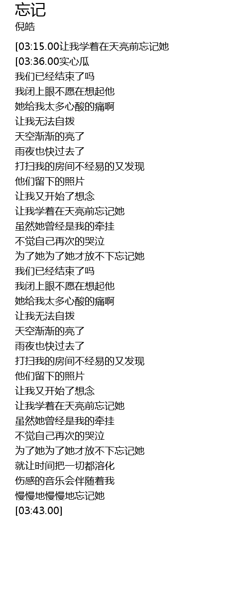 | [03:34.00] | 慢慢地慢慢地忘记她 |