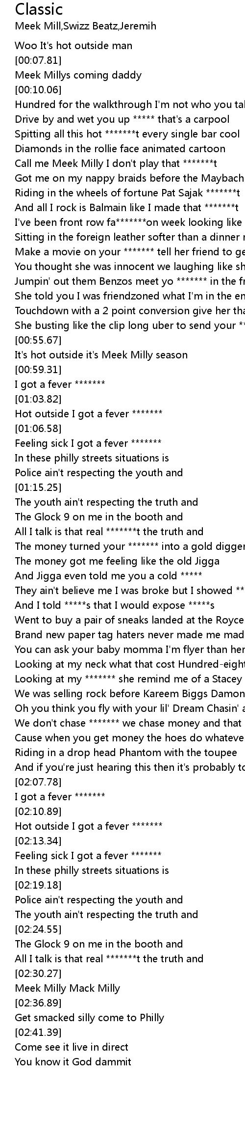 | [00:57.20] | It's hot outside it's Meek Milly season |