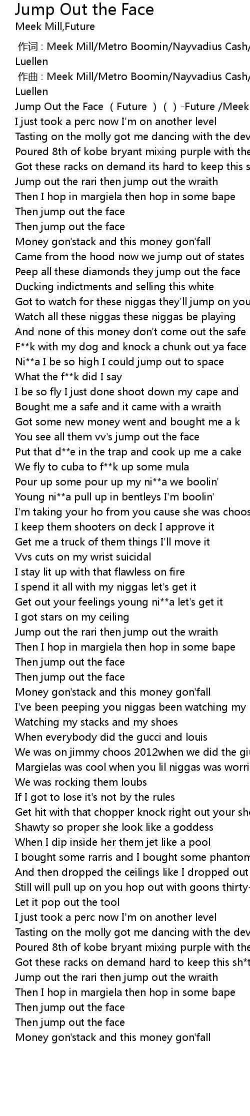 | [00:00.00] | Jump Out the Face (Future )()-Future /Meek Mill |