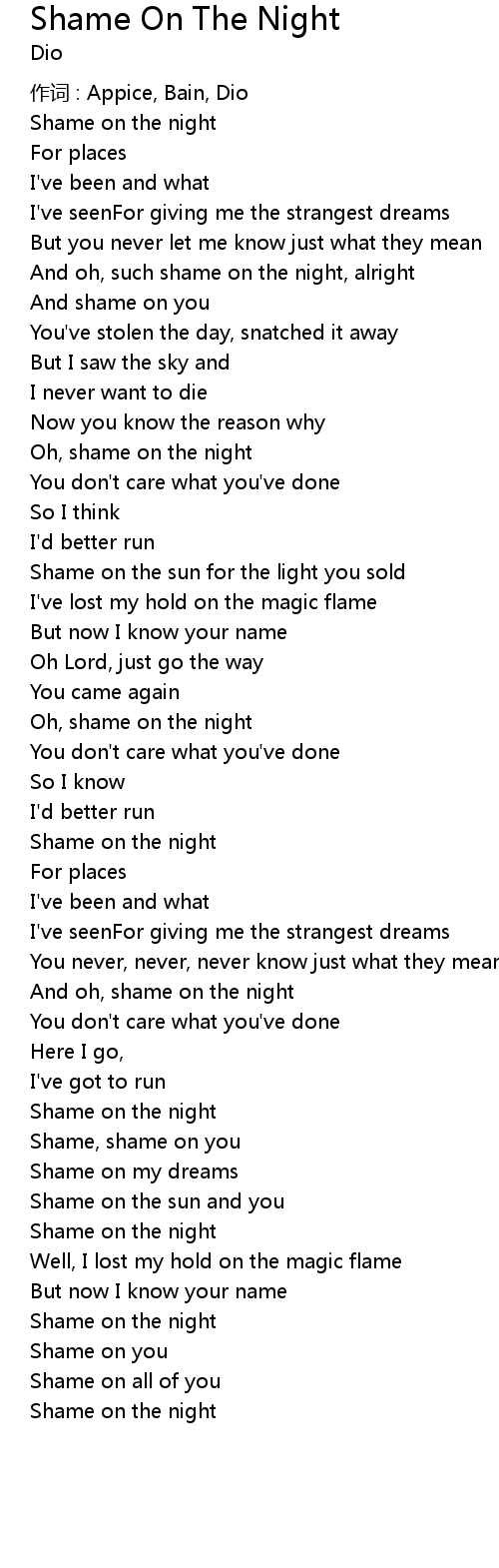 | Oh, shame on the night | |