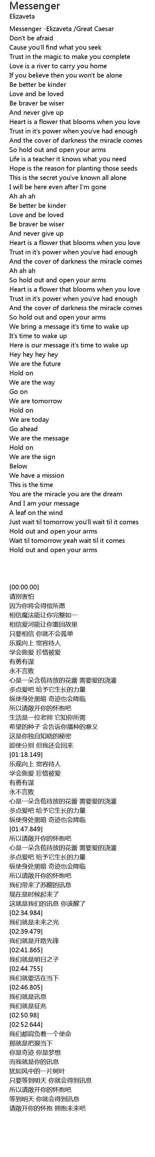 | [00:00.00] | Messenger -Elizaveta /Great Caesar |