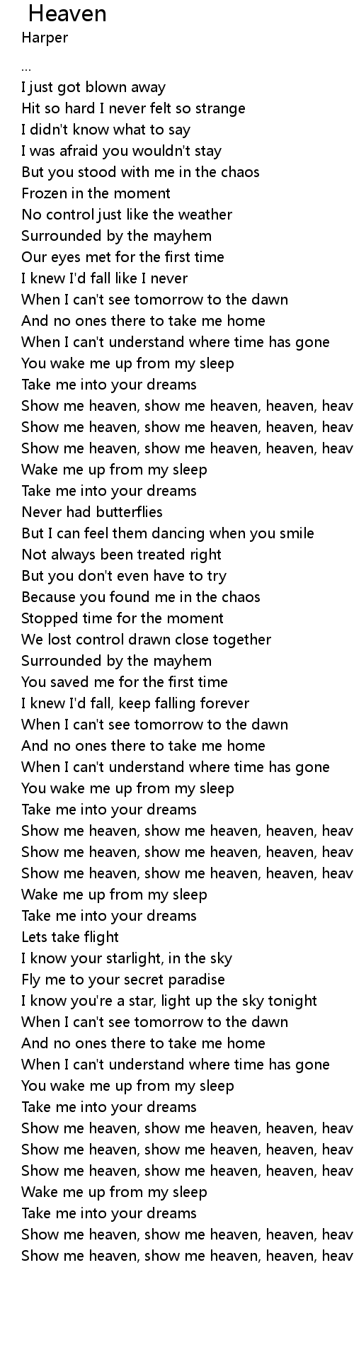 | [03:49.71] | Show me heaven, show me heaven, heaven, heaven |