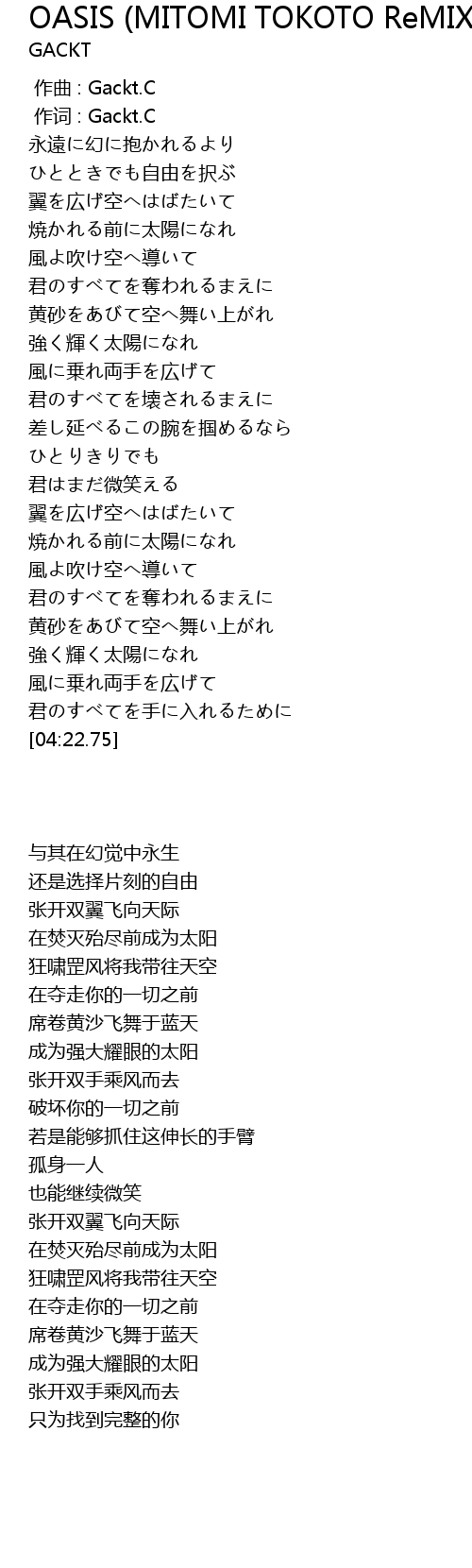 | [00:00.00] | zuò qǔ : Gackt. C |