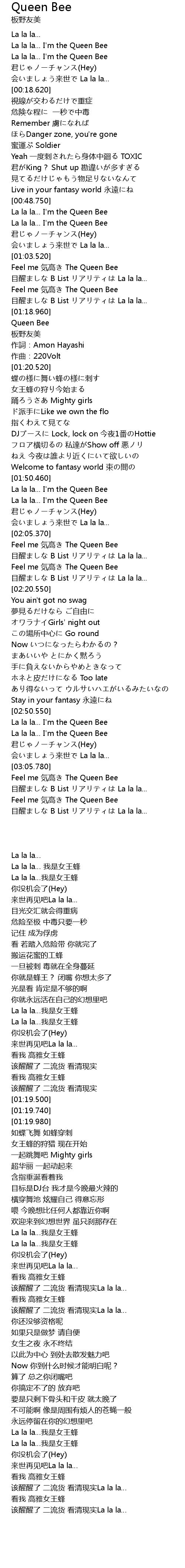 | [00:03.940] | La la la... I'm the Queen Bee |