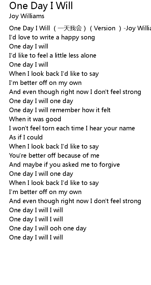 | [00:00.00] | One Day I Will yì tiān wǒ huì Version Joy Williams |