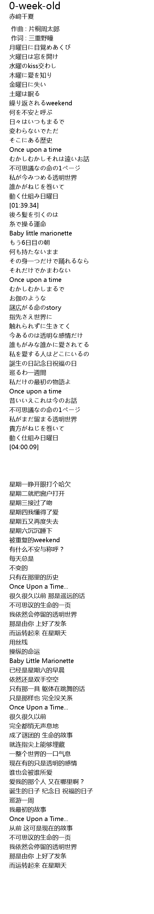 | [03:36.12] | 不可思議なの命の1ページ |