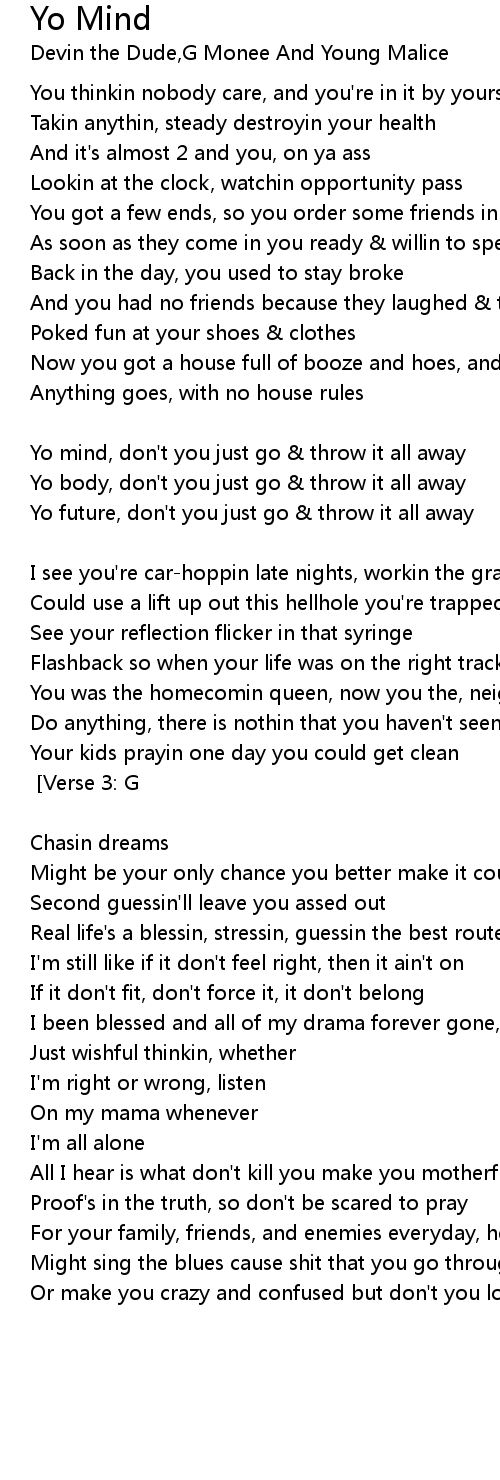 Yo money, don't you just go & throw it all away [Verse 2: Young Malice] |